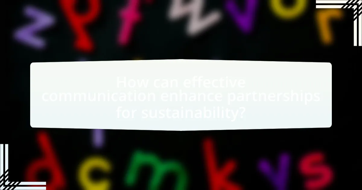Effective communication enhances partnerships for sustainability by fostering trust, clarity, and collaboration among stakeholders. When schools and communities engage in open dialogue, they can share resources, align goals, and address challenges more effectively. Research indicates that effective communication strategies, such as regular meetings and transparent information sharing, lead to increased participation and commitment from all parties involved. For instance, a study by the National Environmental Education Foundation found that communities with strong communication networks are 30% more likely to implement sustainable practices successfully. This demonstrates that clear communication is essential for building and maintaining effective partnerships aimed at sustainability.
